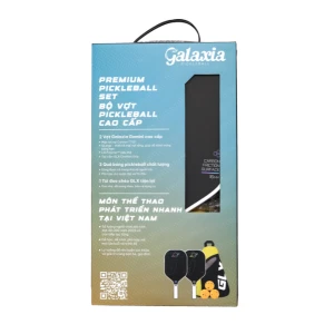 Bộ sản phẩm Galaxia Gemini bao gồm mọi thứ bạn cần để ra sân: 2 vợt Galaxia Gemini Raw Carbon Paddles, 3 bóng tập Galaxia bền bỉ cho cả trong nhà và ngoài trời, cùng 1 túi đeo chéo Galaxia thời trang để bạn dễ dàng mang theo phụ kiện.